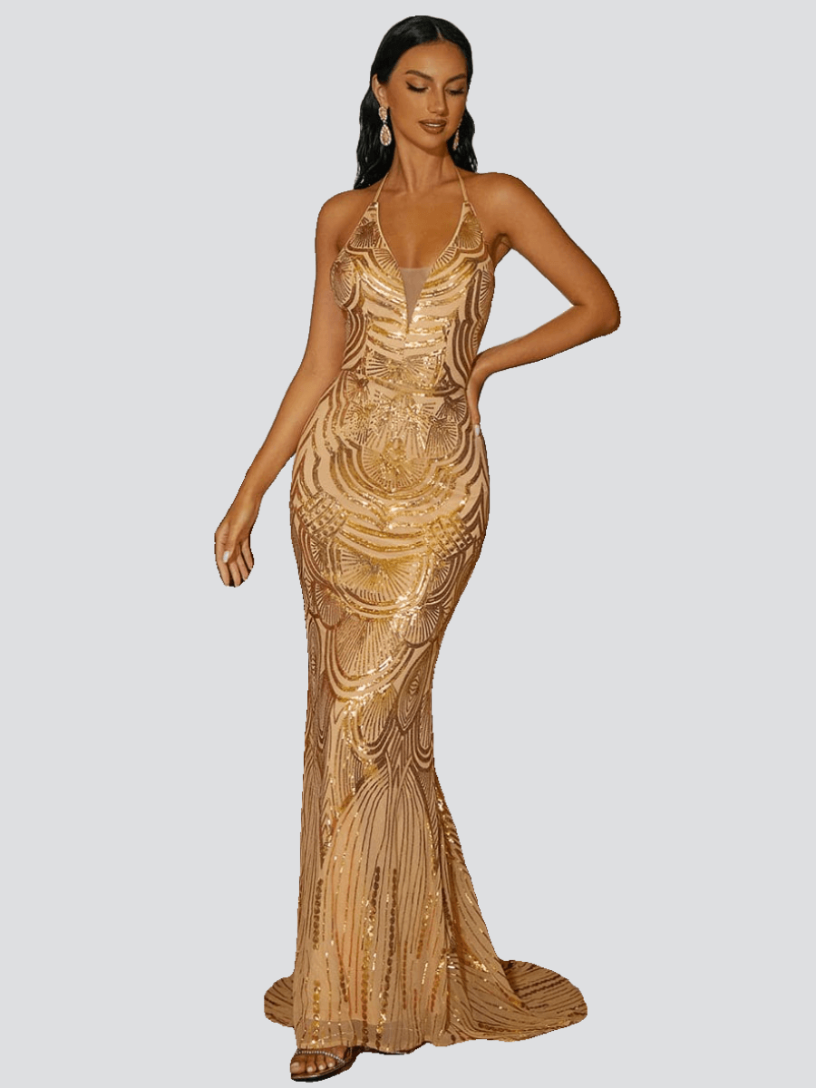 The Backless Lace Up Maxi Evening Dress creates an elegant. romantic look for special occasions. Featuring beautiful lace-up detailing on the back and lightweight. flowing fabric. this floor-length dress is sure to turn heads. AÂ timeless design. you'll never go out of style.
