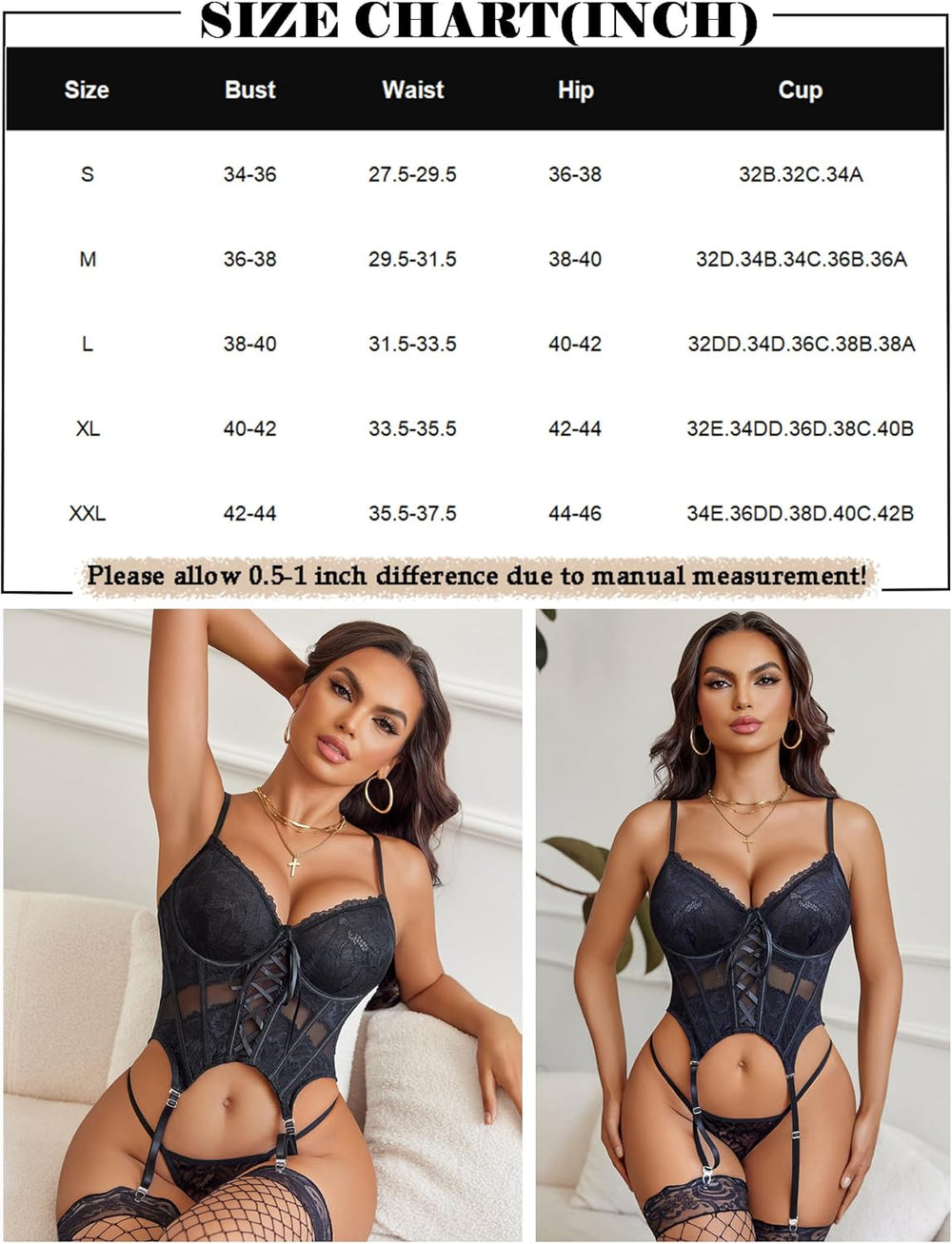 Package:1 x Corset with Garter Belts. 1 x G-String