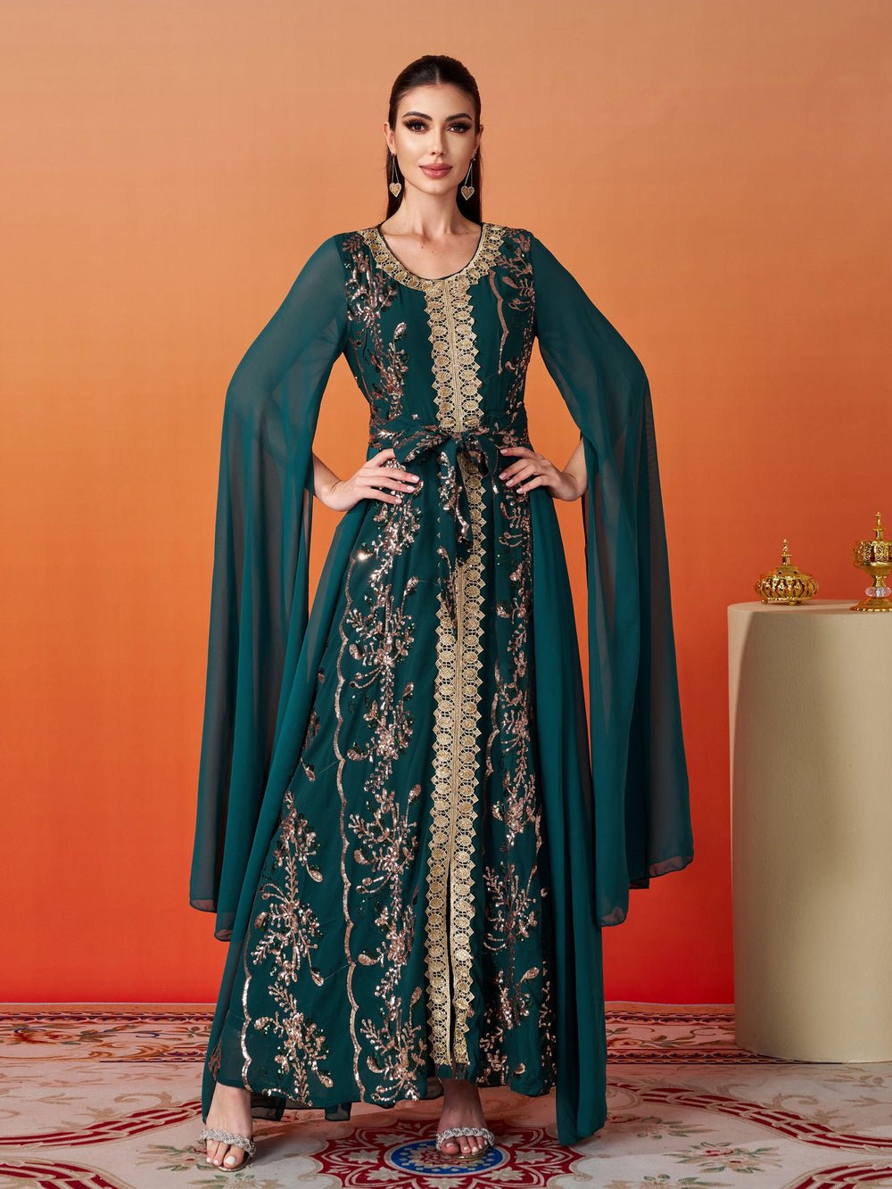 Get ready to dazzle with our Crew Neck Panel Bowknot Sequin Dress! The stylish crew neck and eye-catching bowknot detail will have you looking fabulous. Perfect for any special occasion. this dress will make you stand out from the crowd. Shine on. fashionista!