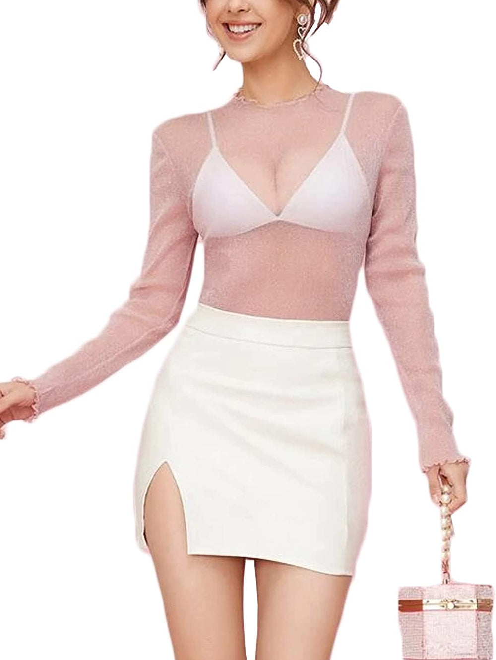 Collocation Sexy long sheeve see through top. mesh top plus size. see thru shirts for women. Great match with denim jeans. shorts and skirt and panties.