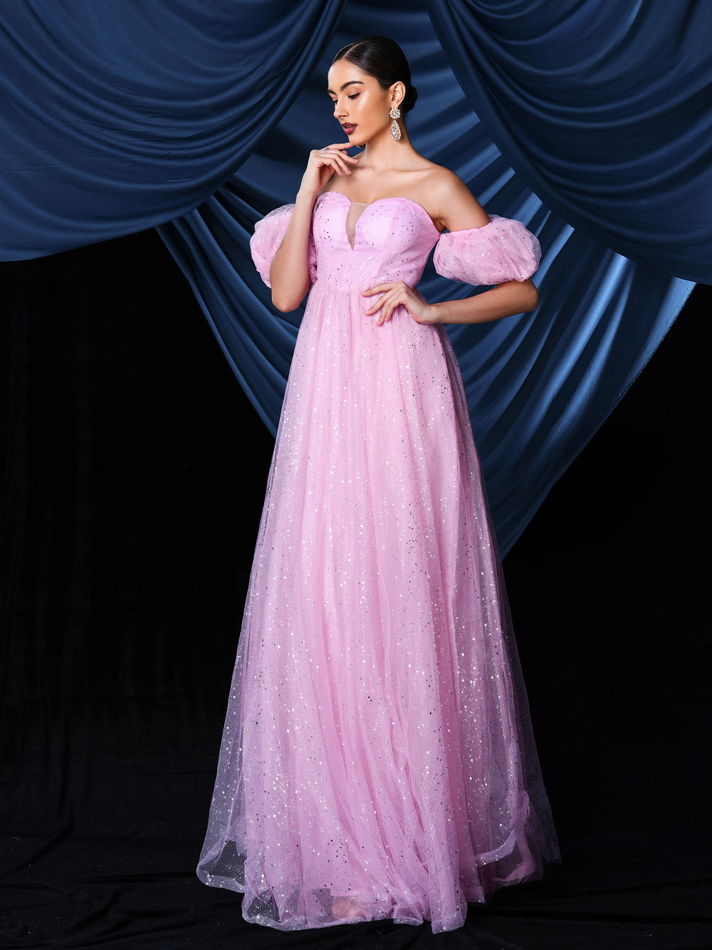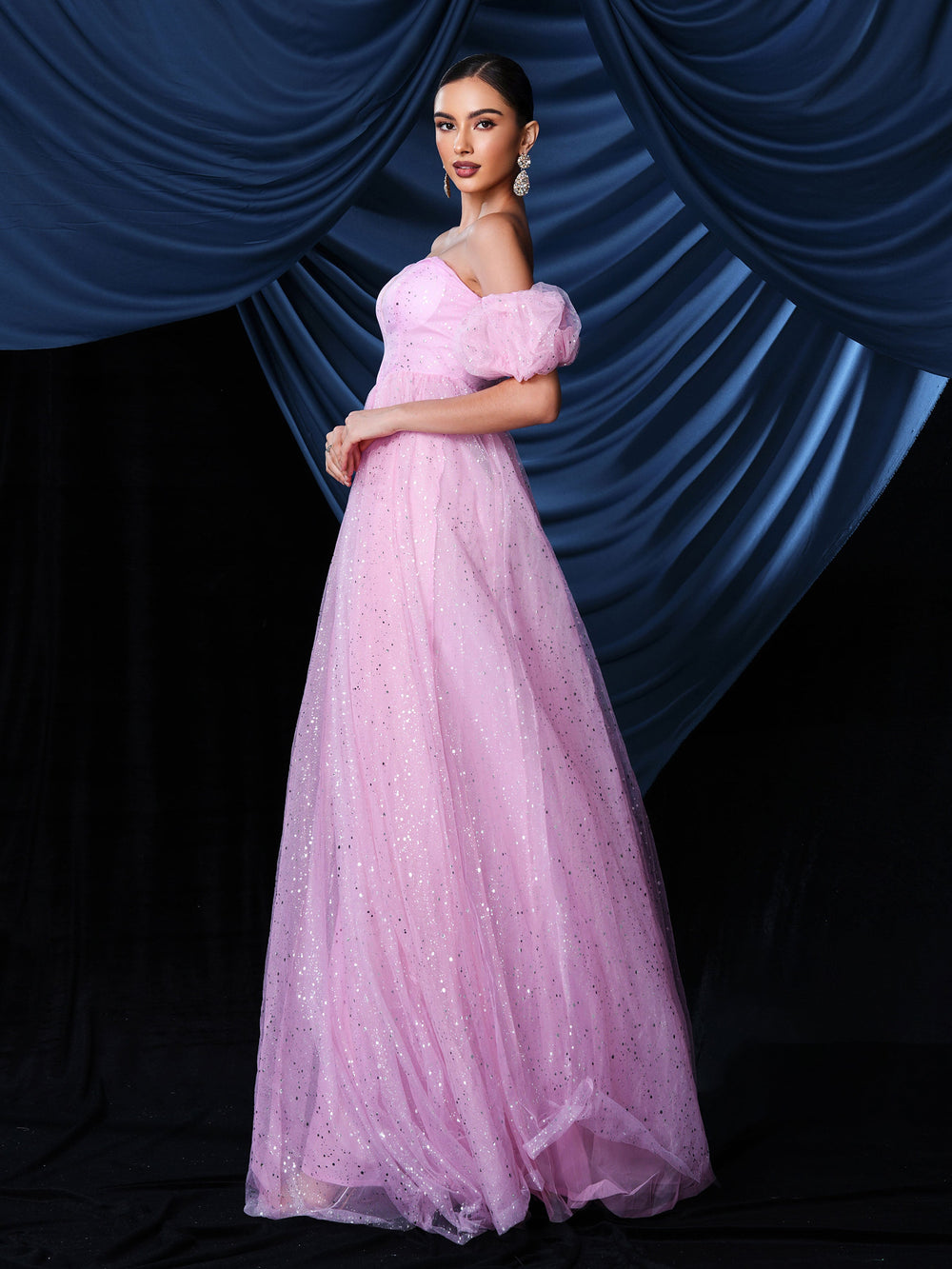 Shimmer and shine in our Off Shoulder A-line Sequin Tulle Dress! This dazzling dress features a flattering A-line silhouette and a playful off shoulder neckline. The sequin embellishments add a touch of glamour. while the tulle fabric creates a dreamy. whimsical look. Perfect for special occasions. this dress will make you stand out from the crowd!