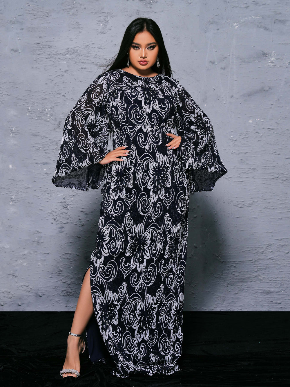 Elevate your style with the Plus Flared Sleeve Printed Split Dress! With its eye-catching print and flattering flared sleeves. this dress is perfect for any occasion. The split design adds a touch of elegance and the plus size makes it comfortable and versatile. Dress it up or down. this dress is a must-have for your wardrobe.