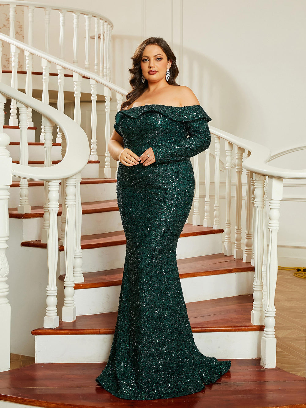 Go for a stunning look with this Plus Size Strapless Off Shoulder Backless Mermaid Evening Dress. Featuring a strapless design with off shoulder details and a mermaid silhouette. this dress exudes elegance and sophistication. Perfect for a special occasion.