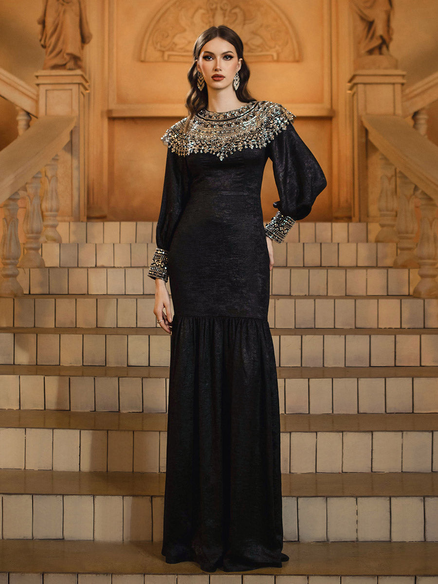 Detail:Crew Neck. Sequin Cape. Ballon Sleeve