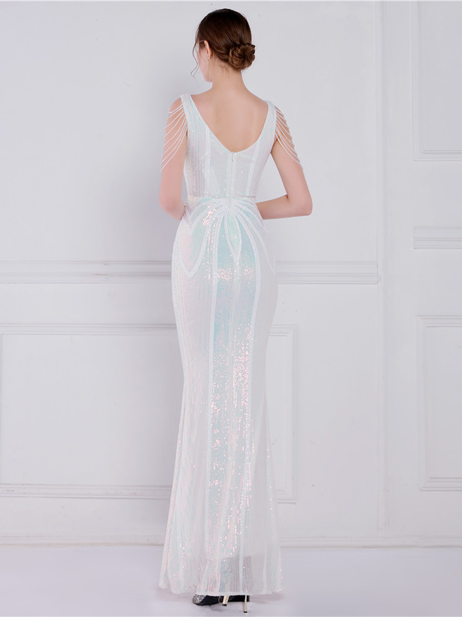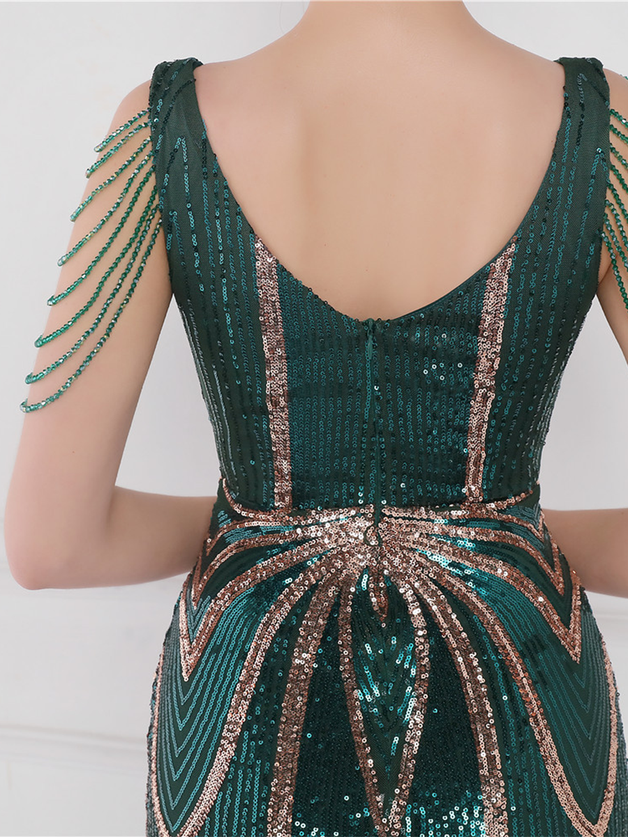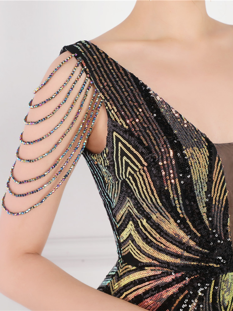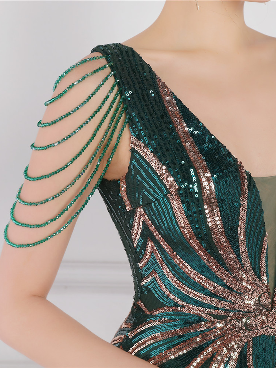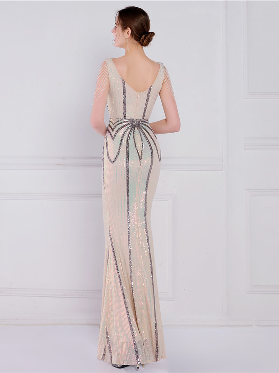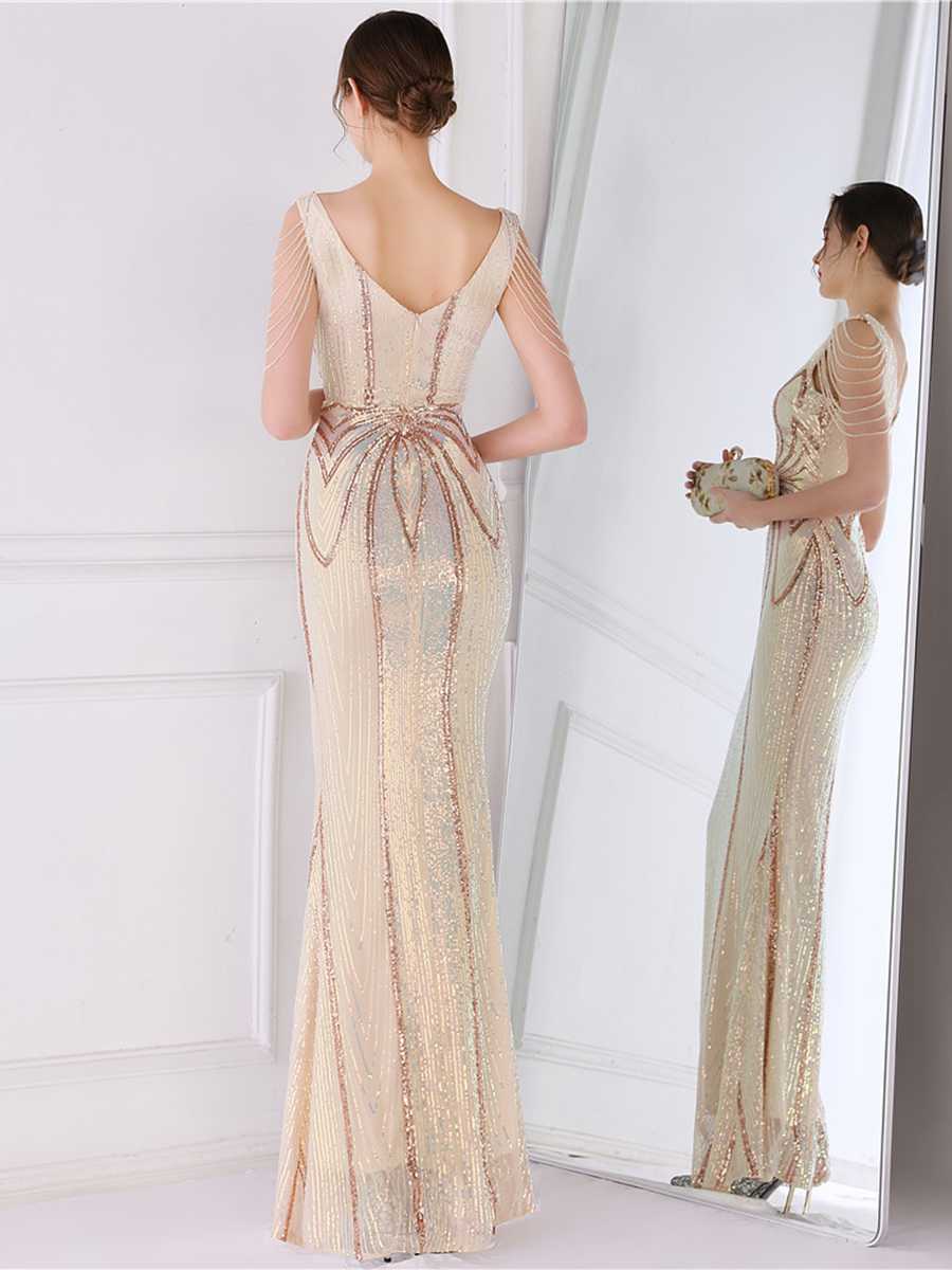 You'll be stunning in any setting in this V Neck Elegant Multicolor Maxi Sequin Prom Dress! Crafted with sequins and a sheath design. this dress has elegance written all over it - and more! So go ahead and twinkle like the star that you are!
