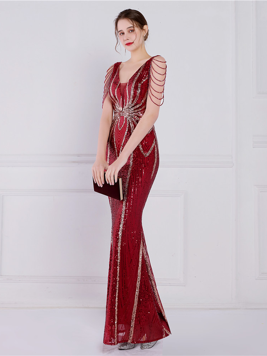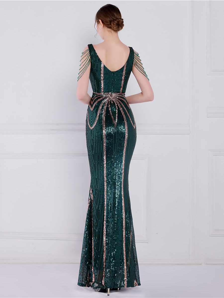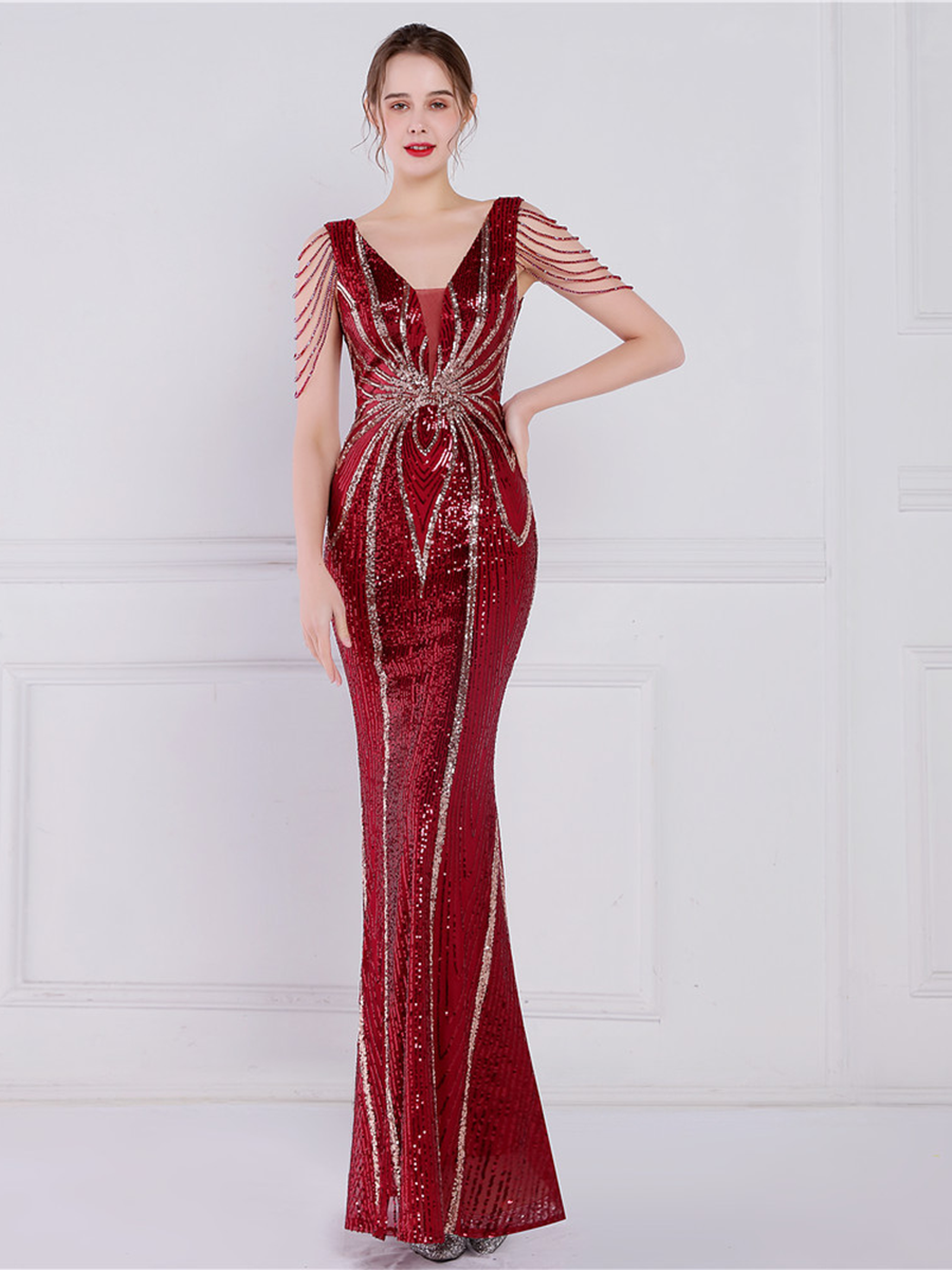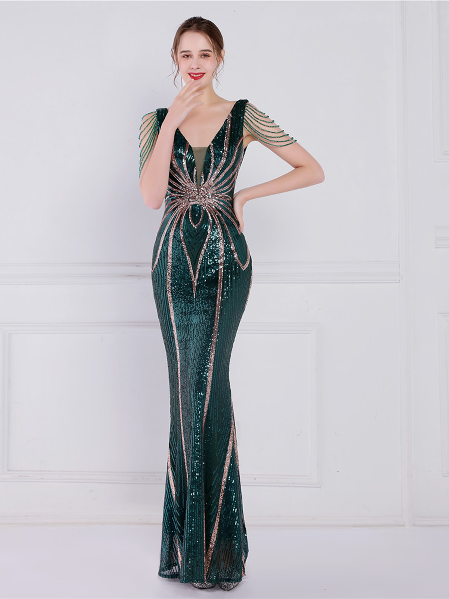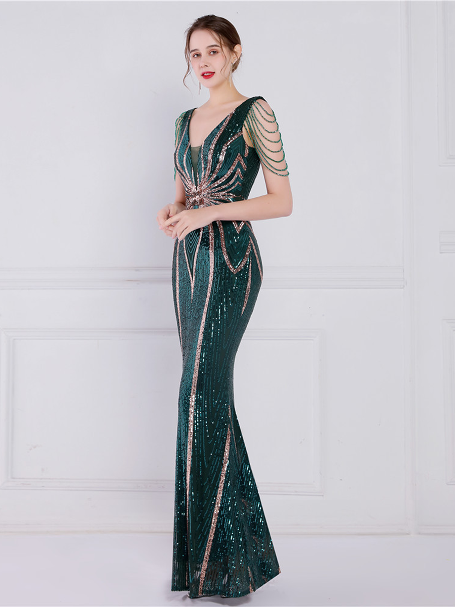 You'll be stunning in any setting in this V Neck Elegant Multicolor Maxi Sequin Prom Dress! Crafted with sequins and a sheath design. this dress has elegance written all over it - and more! So go ahead and twinkle like the star that you are!